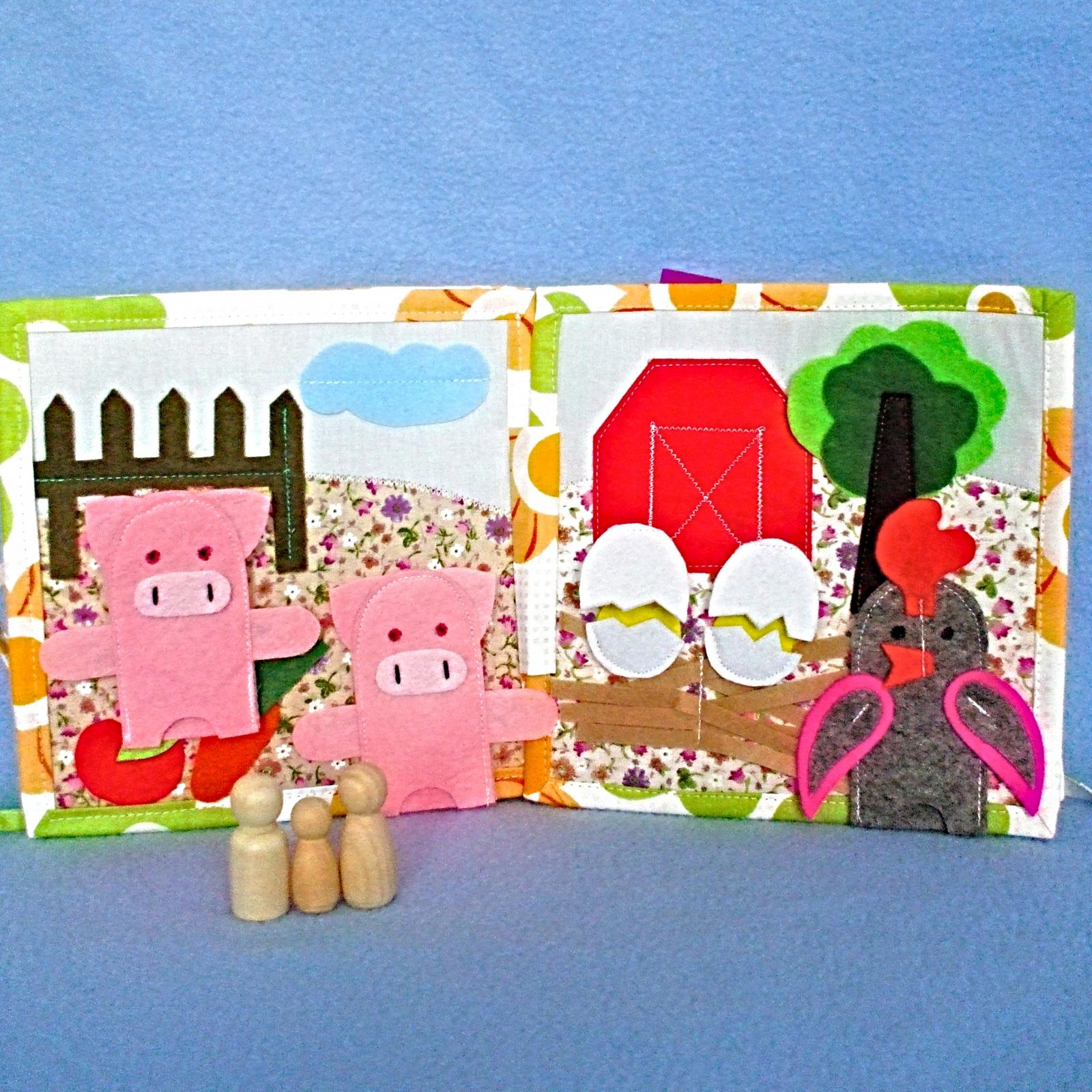 Sensory quiet book for preschoolers featuring finger puppets and farm life scenes.